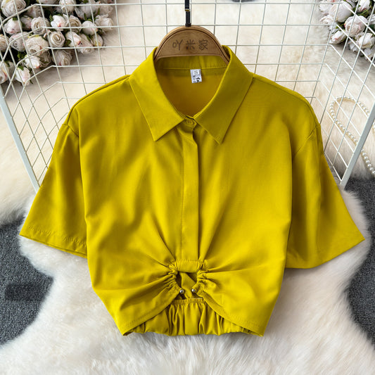 Slim Fit And Thin Cover Belly Hot Girl Irregular Short-sleeved T-shirt For Women