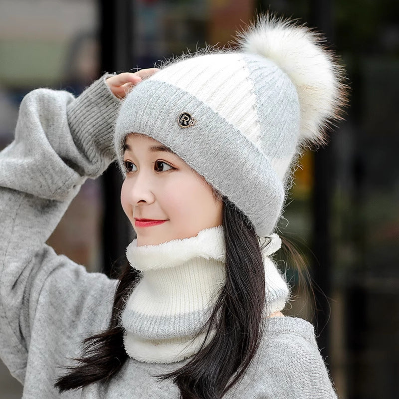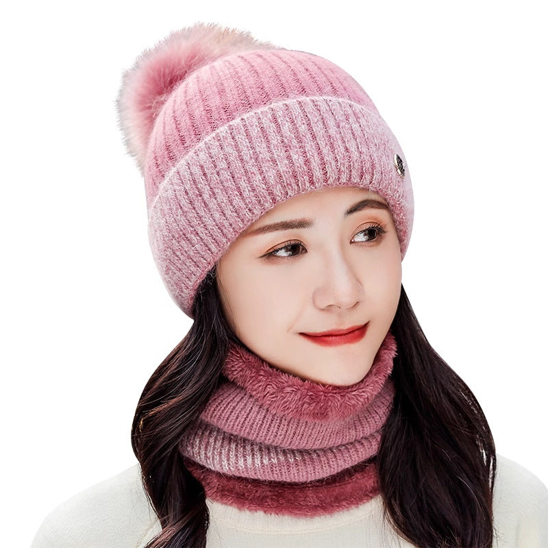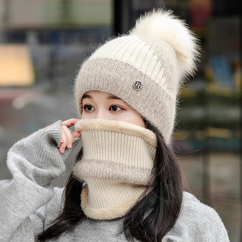 All-match Cycling Warm With Velvet Cold-proof Women's Winter Cotton-padded Cap Scarf Set