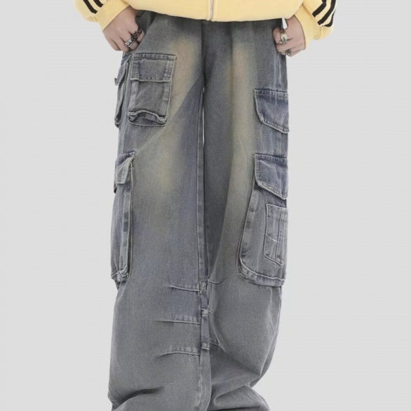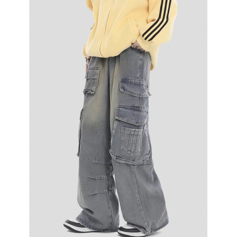 Men's American Retro Multi-Pocket Cargo Jeans – Straight Fit Streetwear
