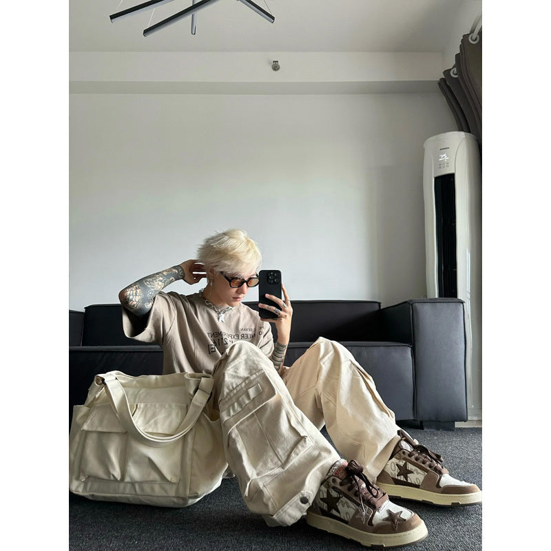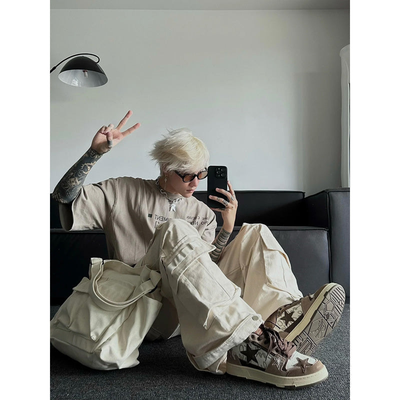 Men's Beige & White Multi-Pocket Overalls – Streetwear Utility Fashion