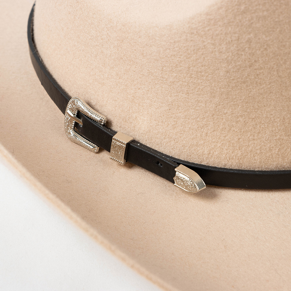Belt Buckle Wide Brim Curling Wool Cowboy Hat