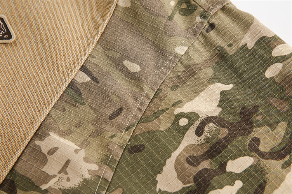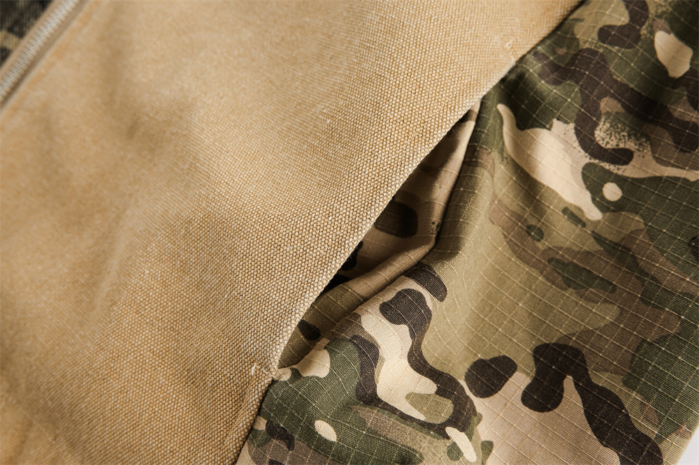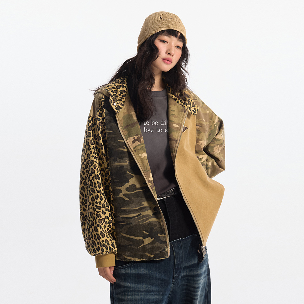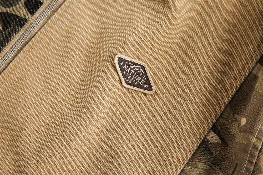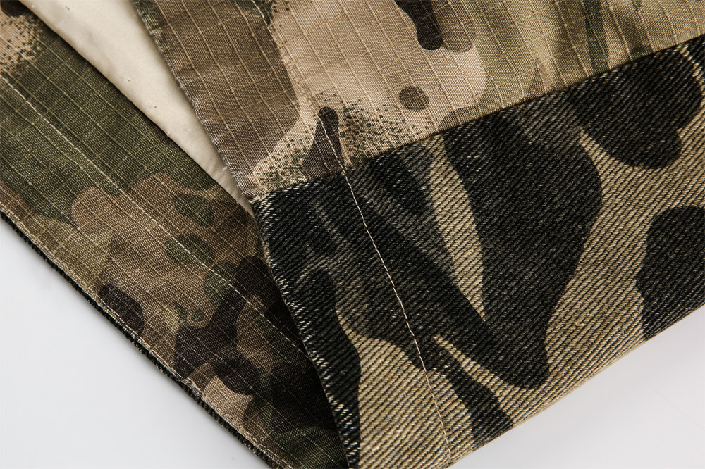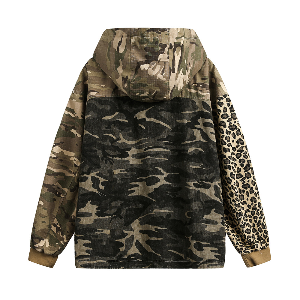 Camouflage Hooded Denim Jacket Color Contrast Patchwork