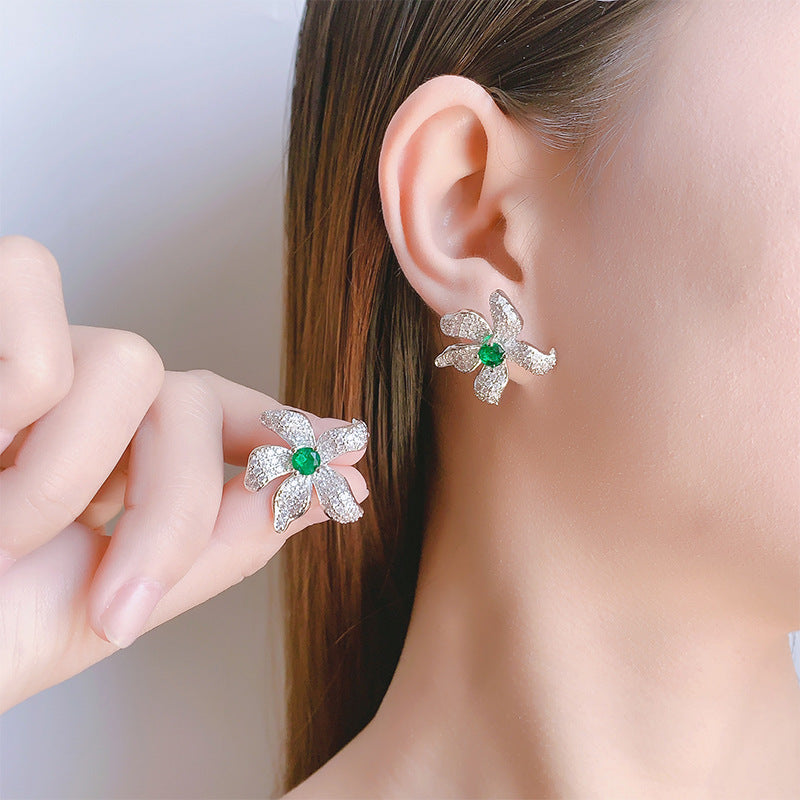Colored Gems High-grade Big Flower Starfish Stud Earrings Female