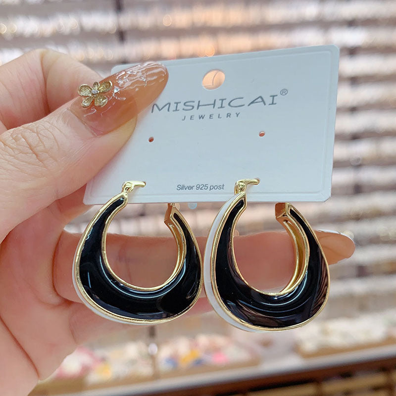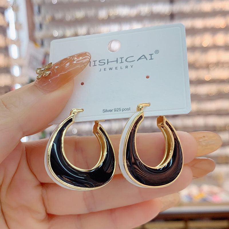 Color: white drop oil ear clip (14k real gold plating), black drop oil ear clip (14k real gold plating)