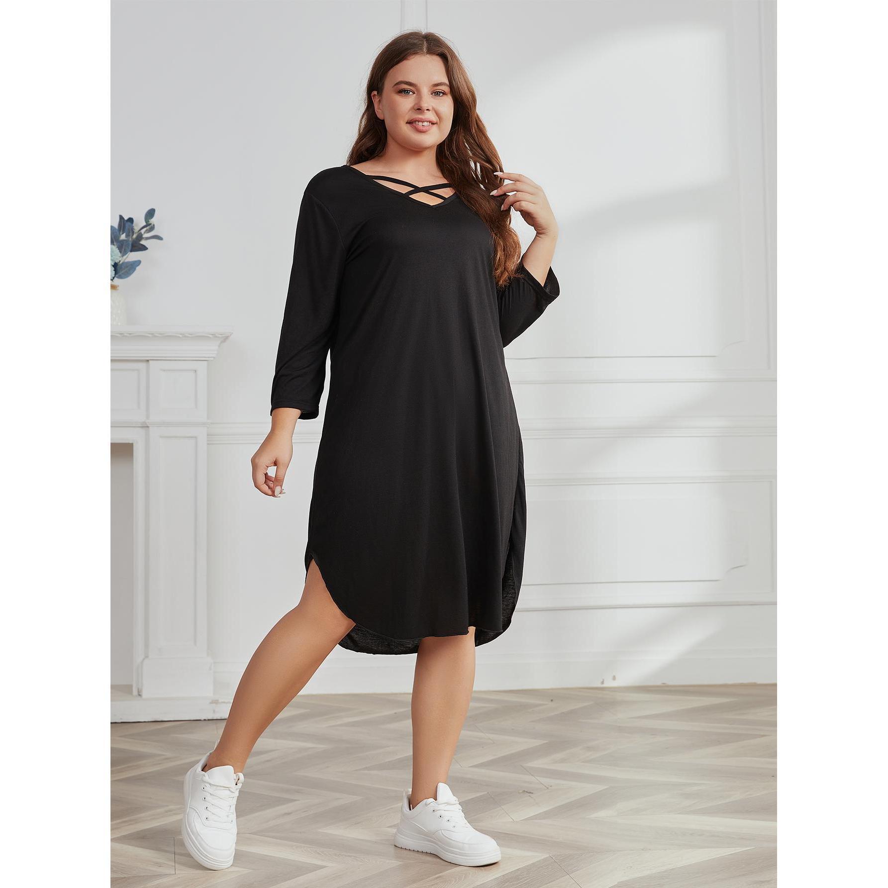 Fashion Casual Loose Long Sleeve Plus Size Dress Women