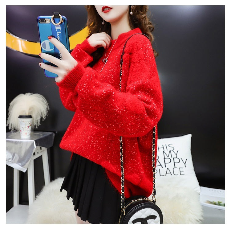 Fashion Lazy Solid Color Round Neck Loose Sweater Women