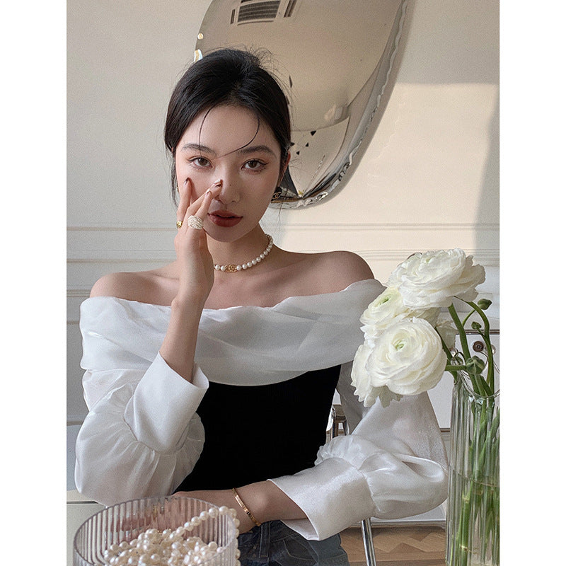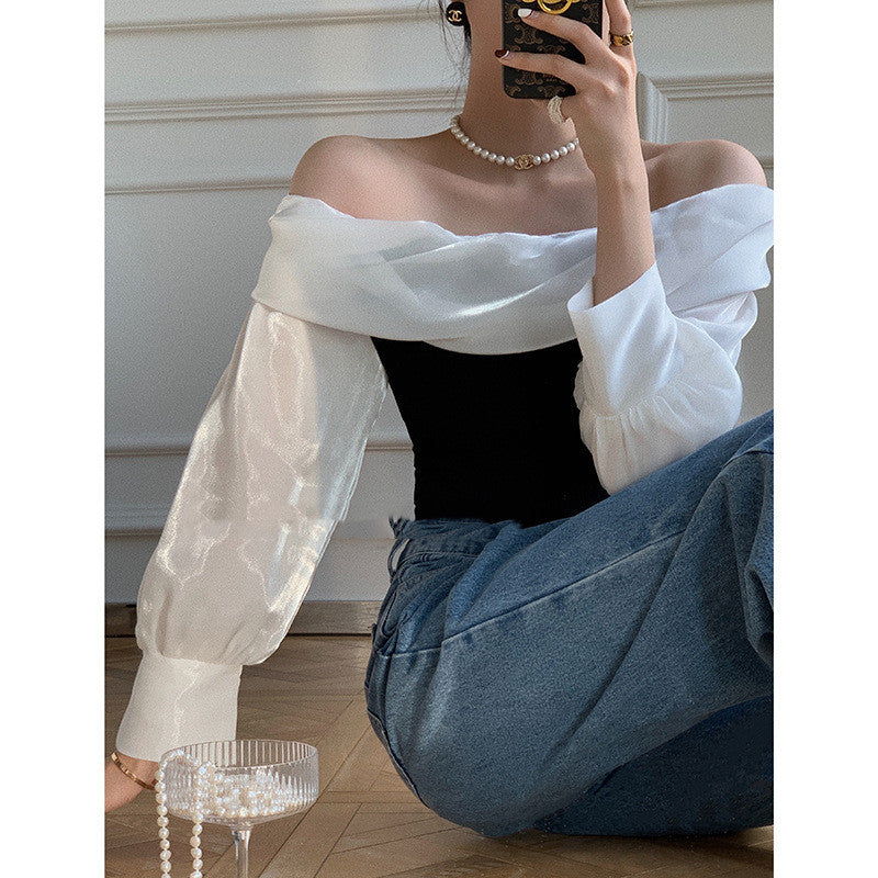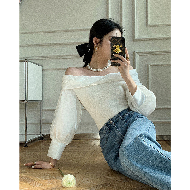 French Pure Desire Off-the-shoulder Knitted Sweater
