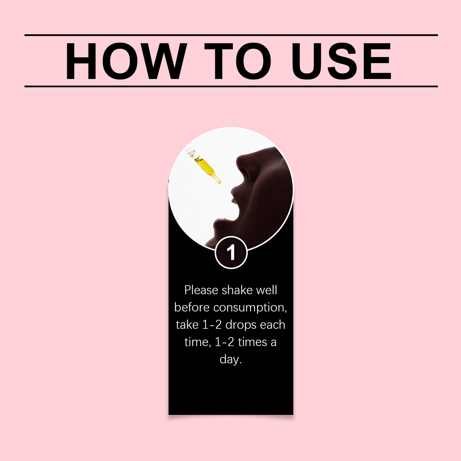 Our self-tanning drops contain peppermint leaf extract, Chinese herbal extract, gluconate lactid. It can be used by people of all skin types. Simple and easy to stick to on a daily basis. The way to use it is simple: shake 1-2 drops each time, 1-2 times a day, before taking it. And the skin color depth can be adjusted according to your needs.
