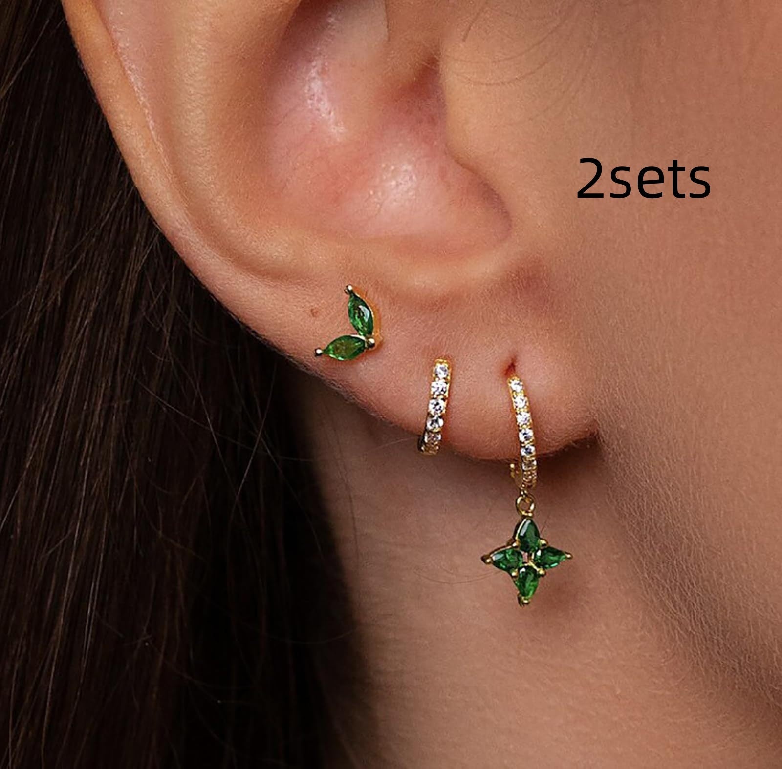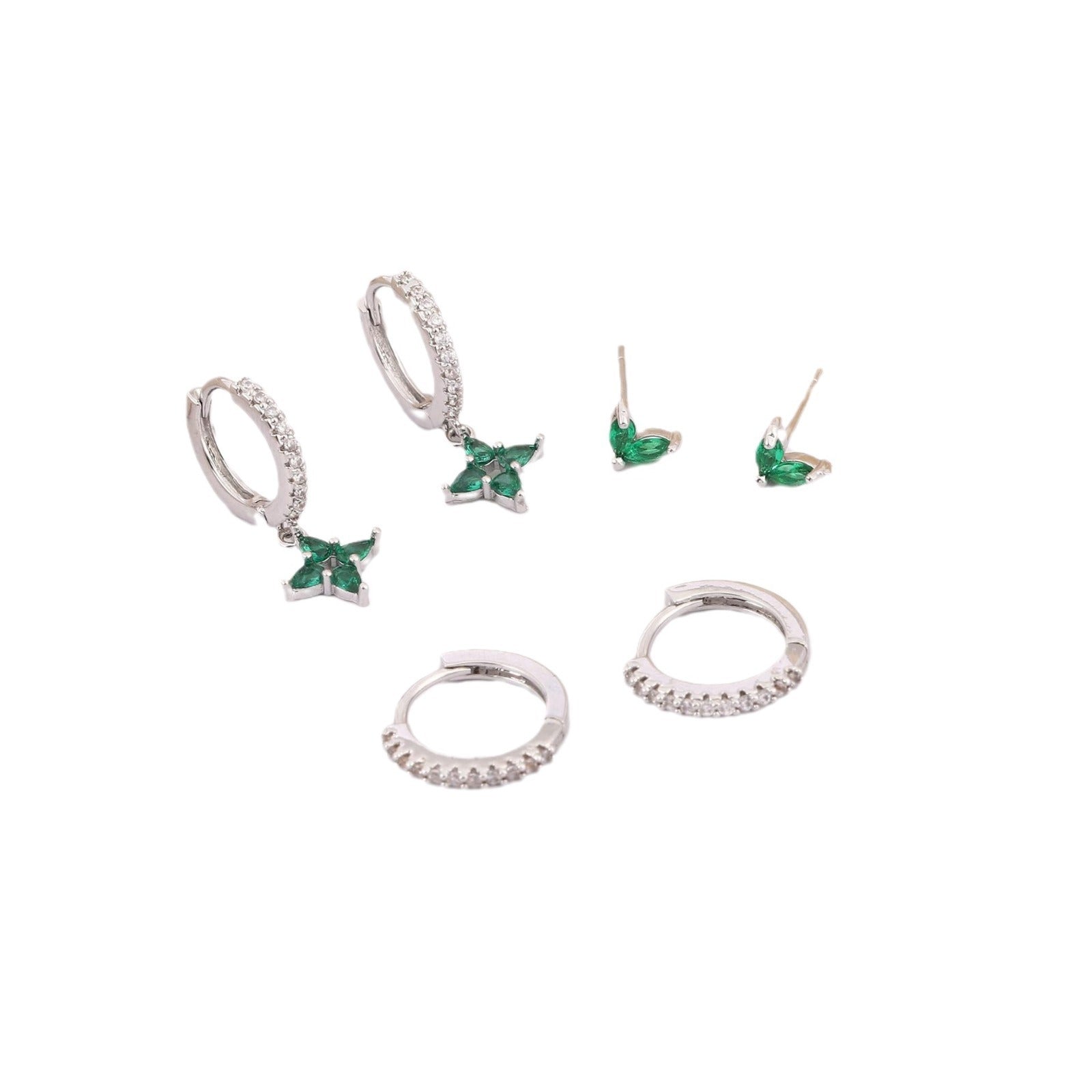 Green Inlaid Zircon Fashion Women's Earrings Three-piece Set