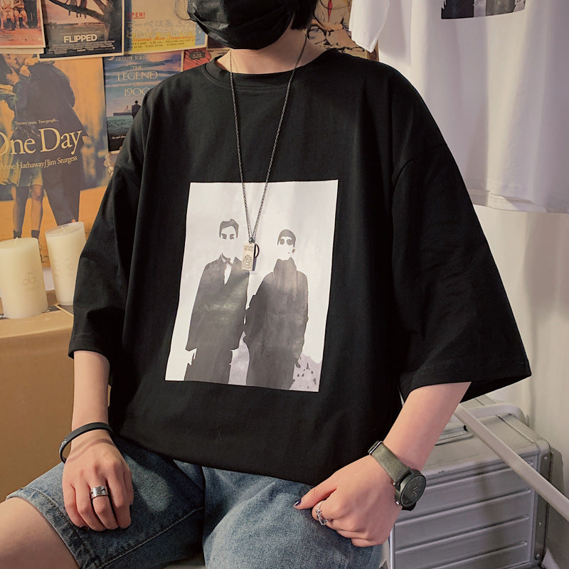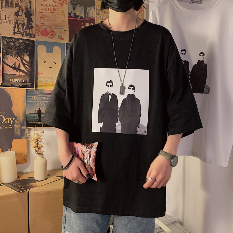Men’s Korean-Style Loose Round-Neck T-Shirt – Oversized Graphic Comfort