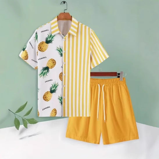 Men’s 3D Digital Print Shirt & Shorts Set – Bold Summer Casual Outfit