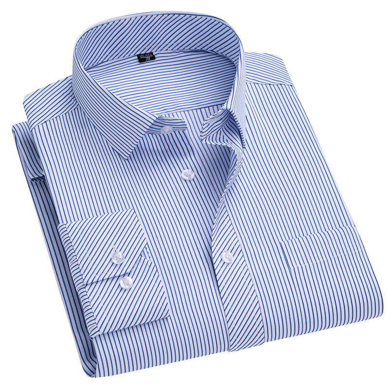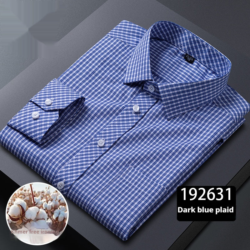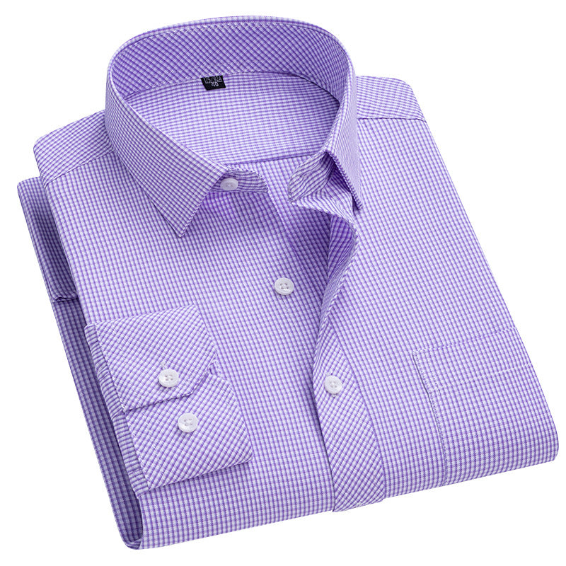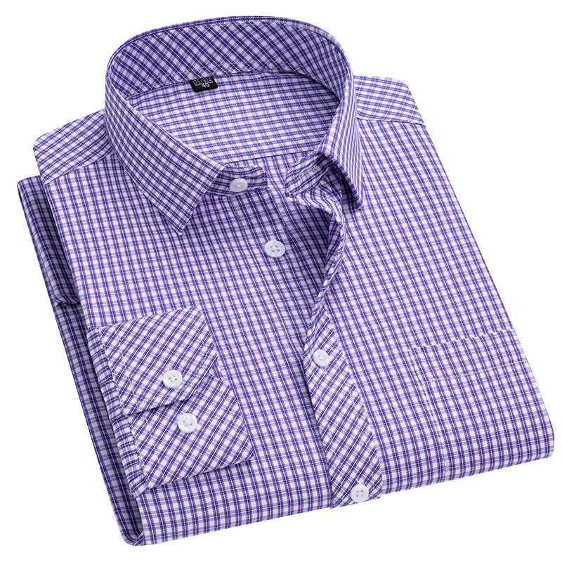 Men’s Plaid Long-Sleeve Shirt – Square Collar Business Casual