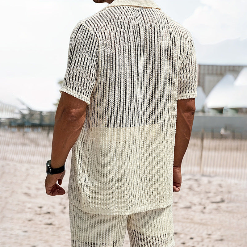 Men’s Retro Cotton-Linen Striped Henley Shirt—Loose Fit with Cardigan Lapel