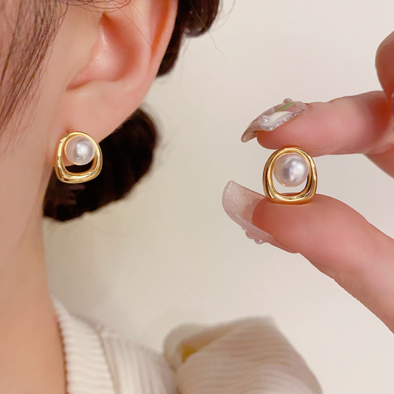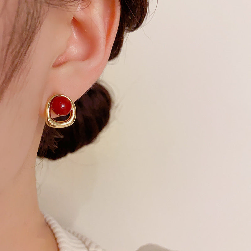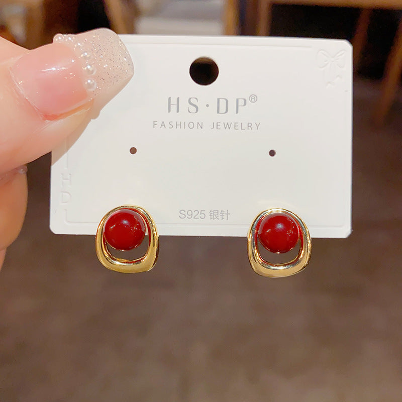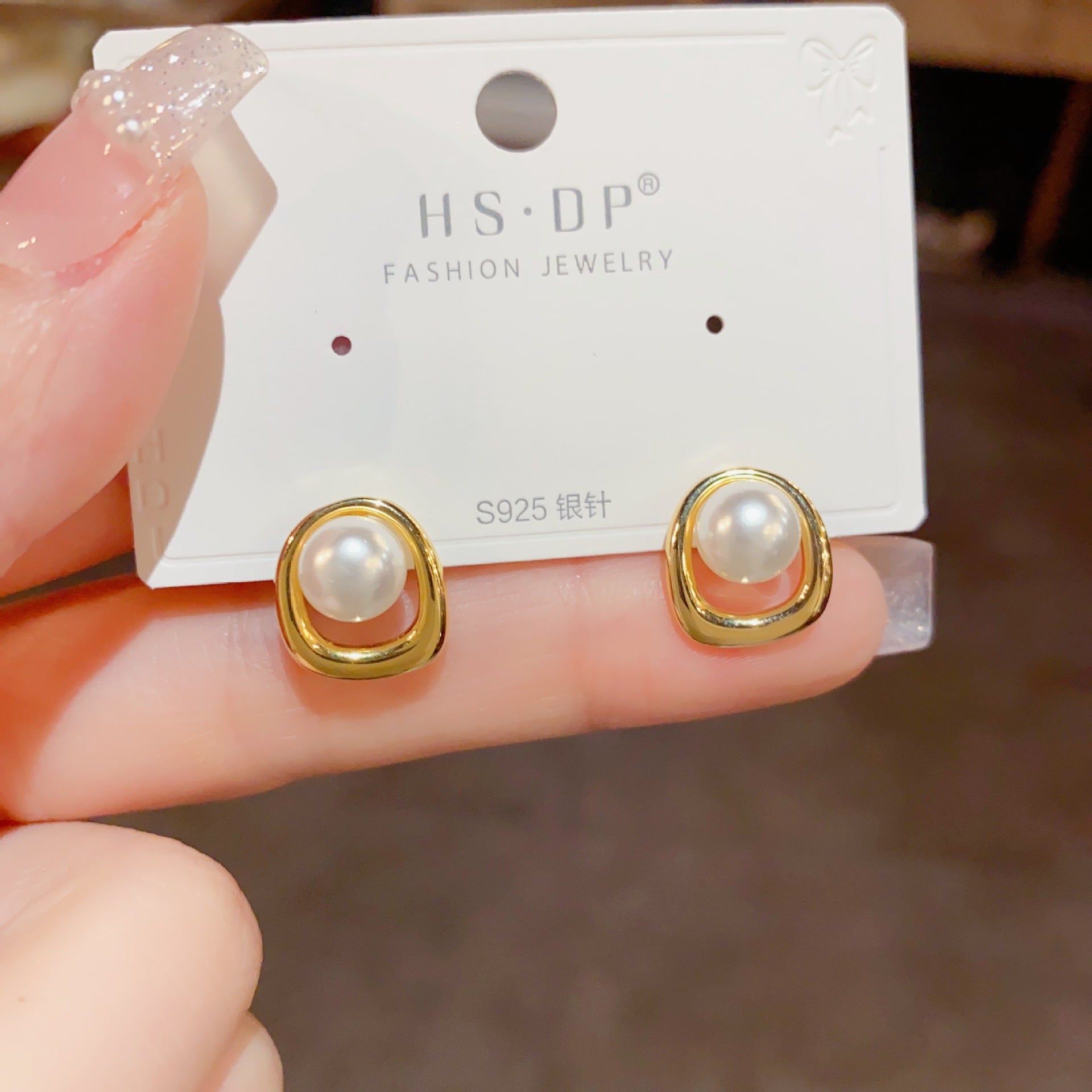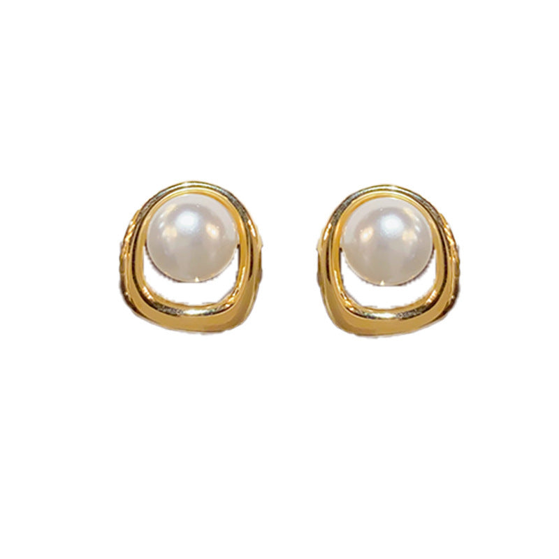 Color: white metal pearl stud earrings (thick real gold plating), red metal pearl stud earrings (thick real gold plating)