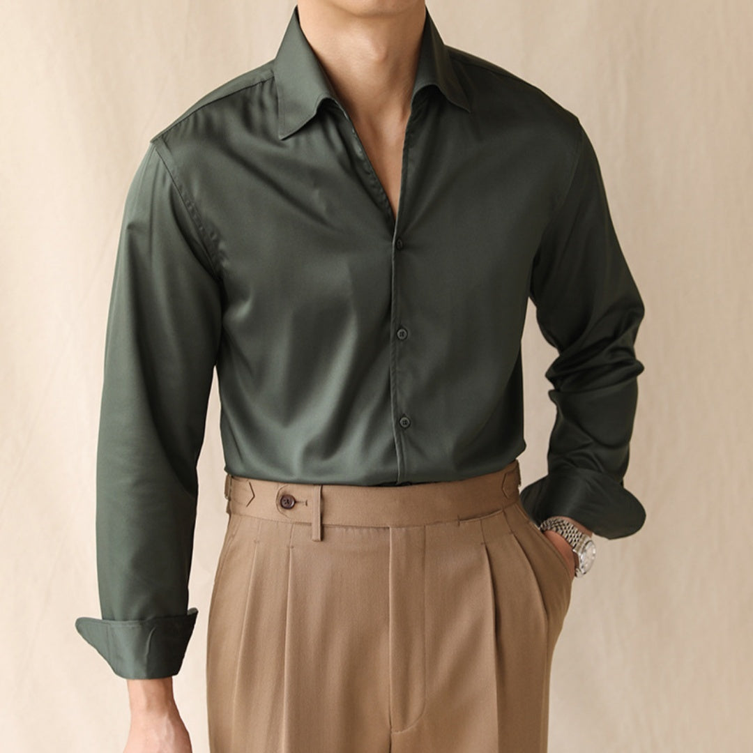 Men’s One-Piece Collar Long-Sleeve Shirt – Elegant Roll Neck Design