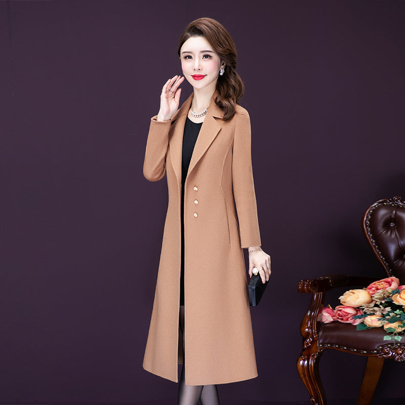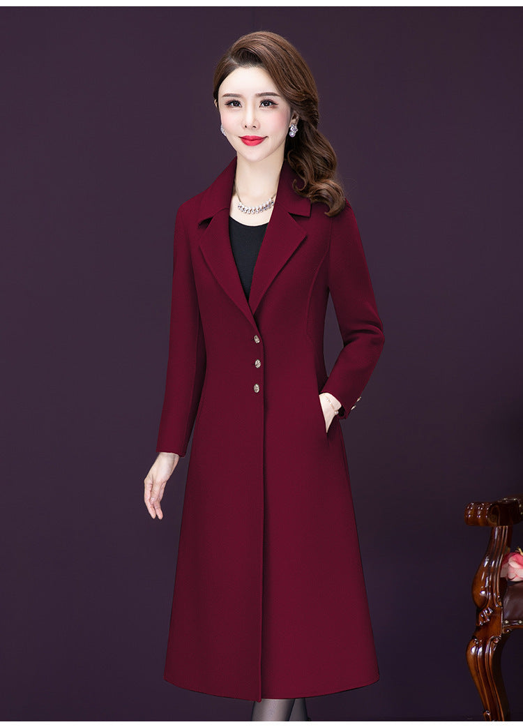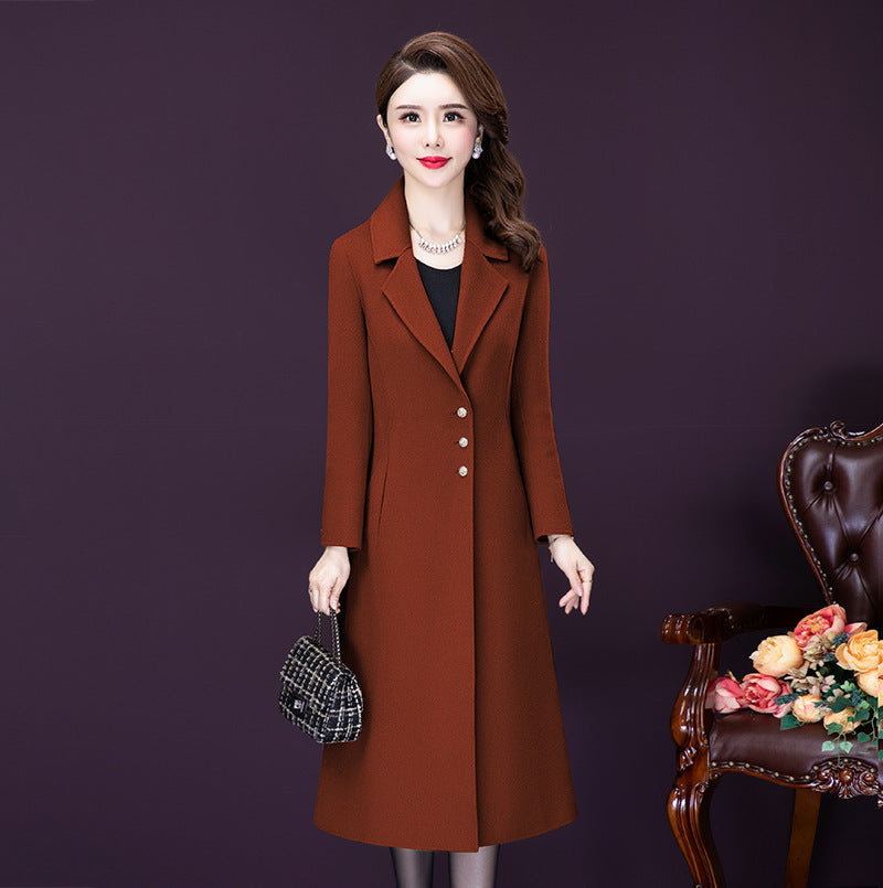 Overknee Mid-length Temperament Coat Female Slim Fit Woolen