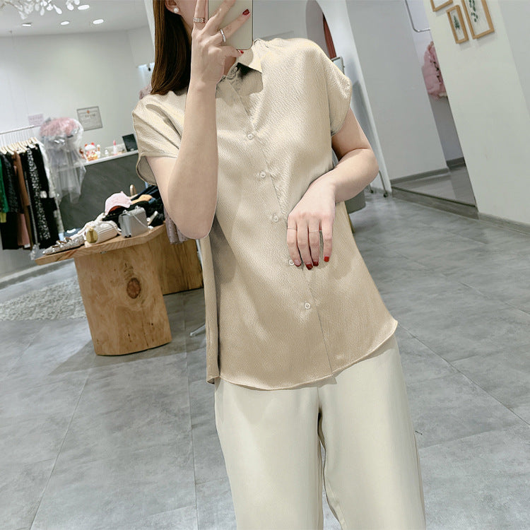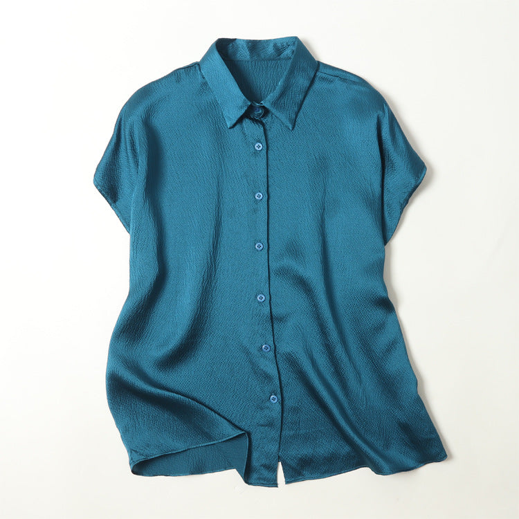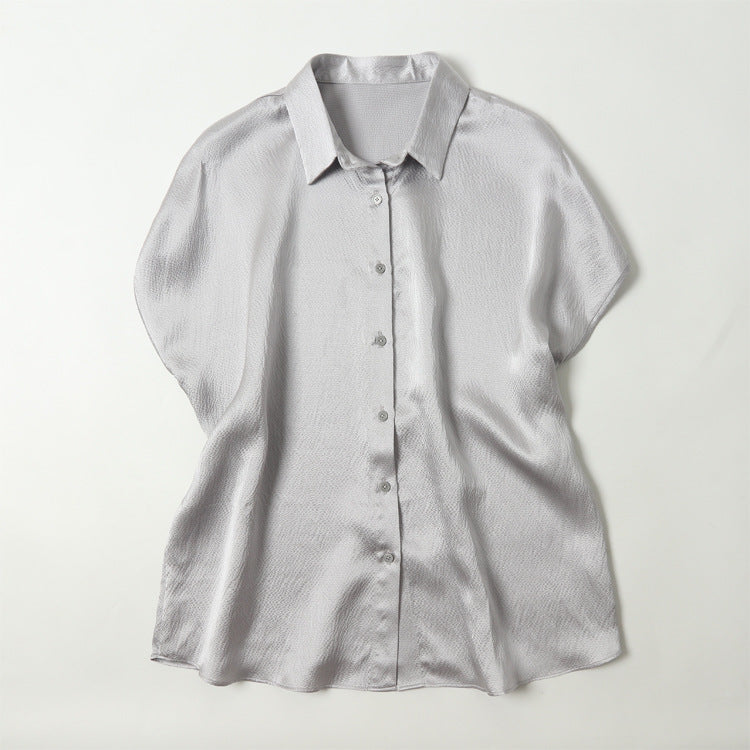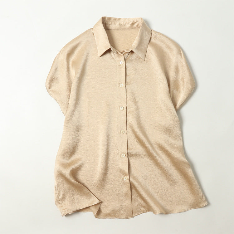 Pearl Satin Shirt Reverse Collar Single-breasted