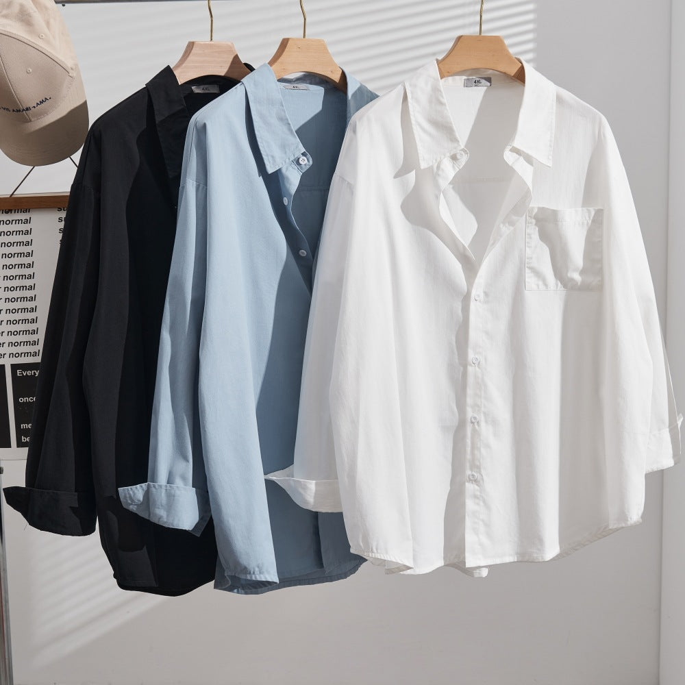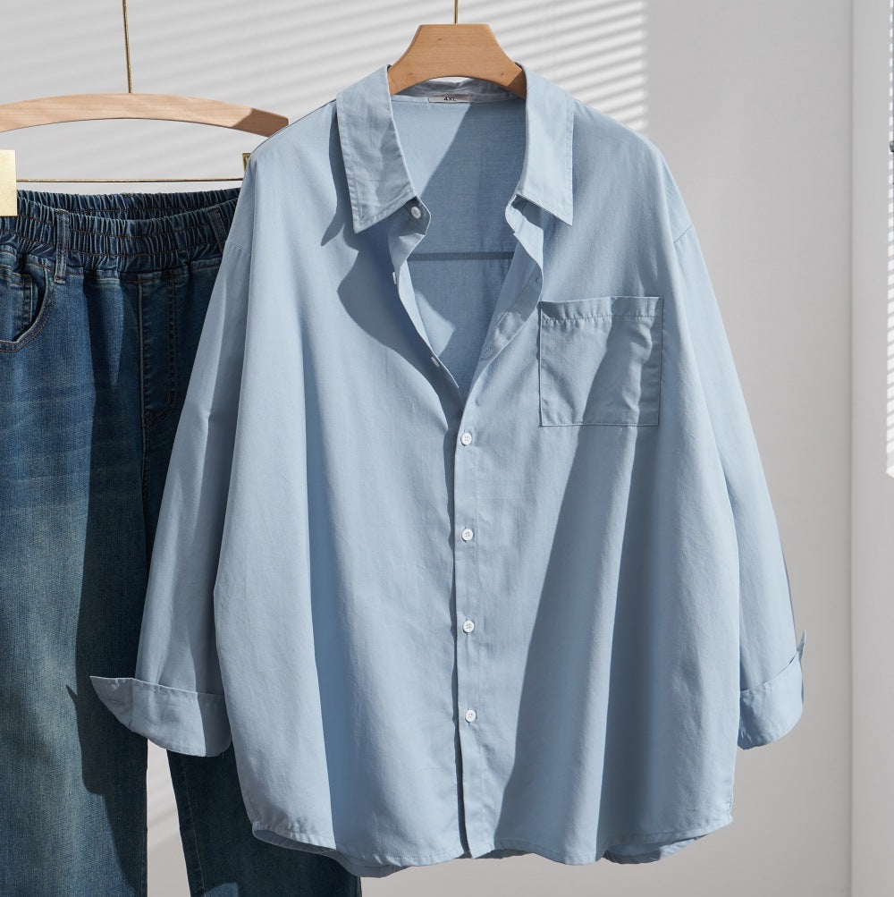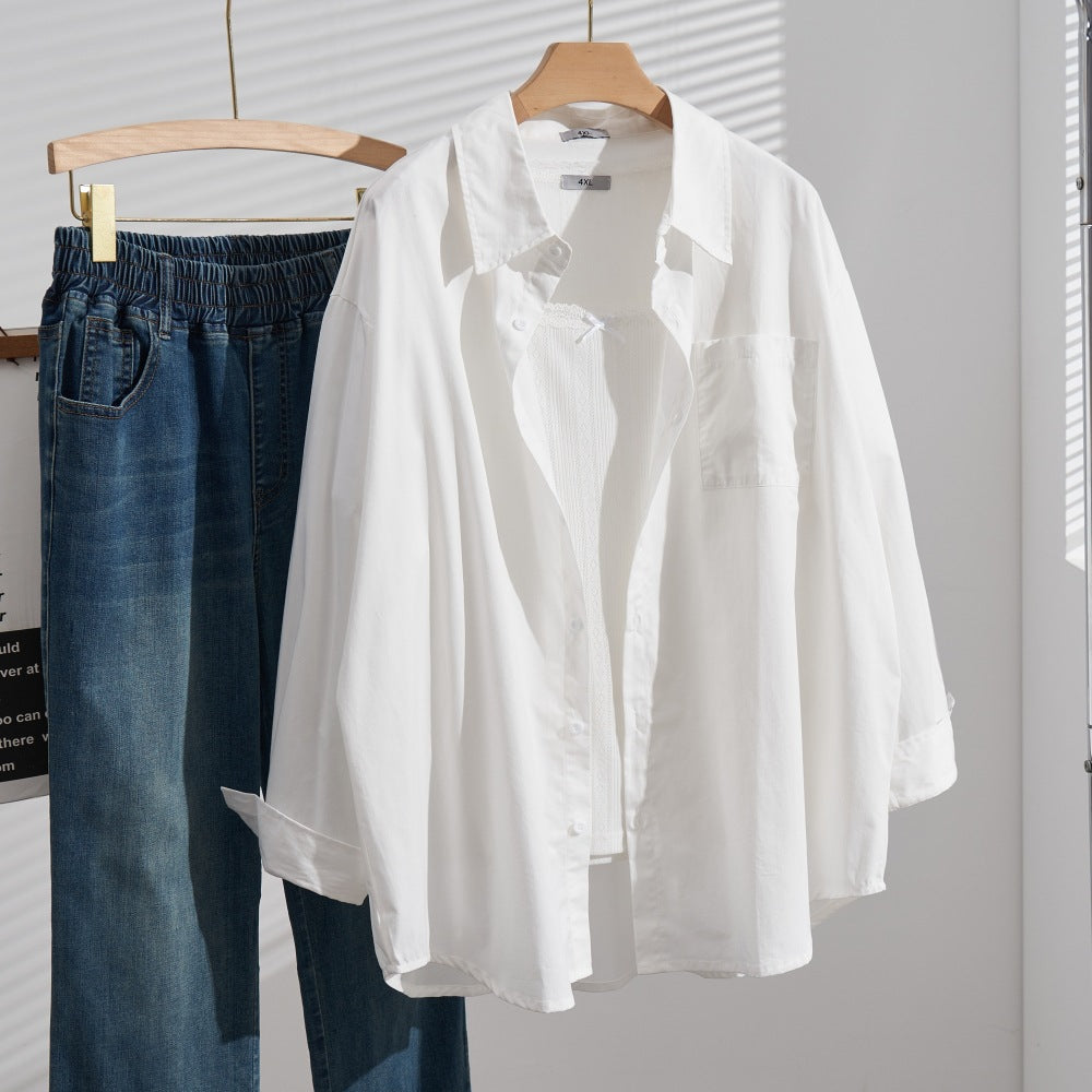 Plus Size Cotton Casual Shirt Loose Slimming Thin Long Sleeve