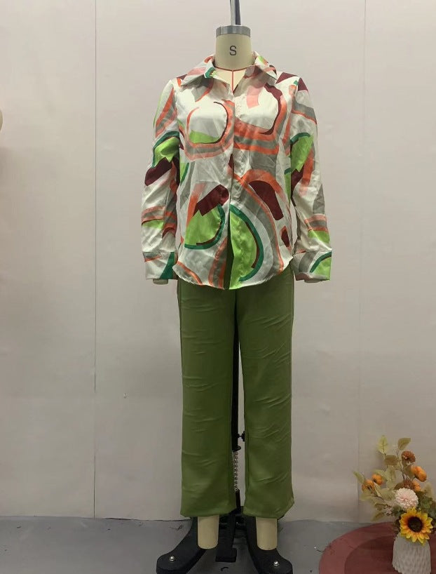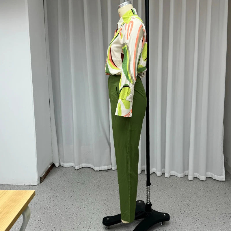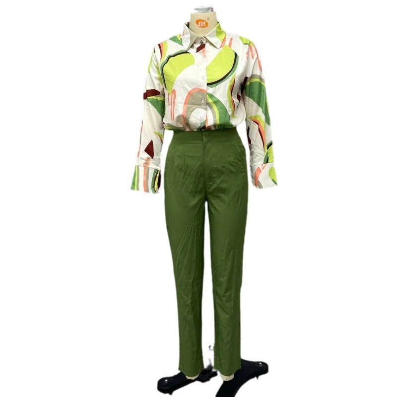Printed Shirt Slim Trousers Casual Two-piece Suit