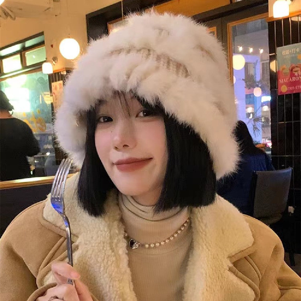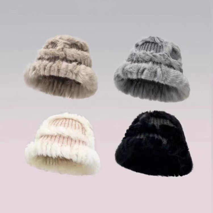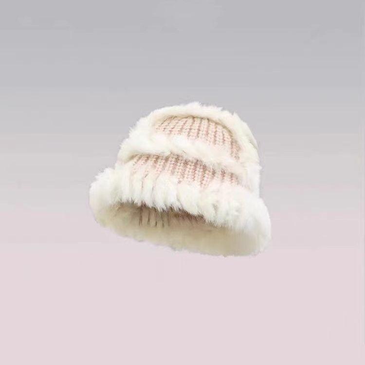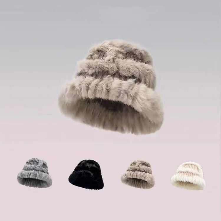 Rabbit Fur Hat Women's Autumn And Winter All-matching Thickened Plush Knitted