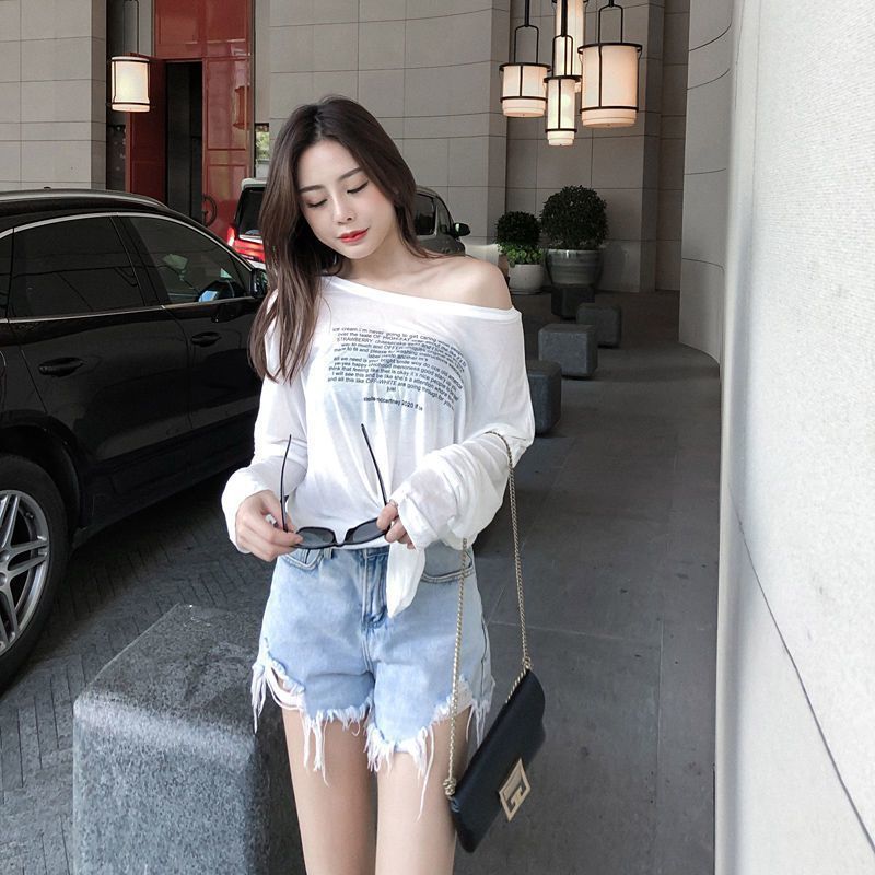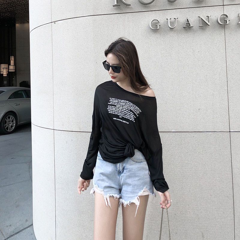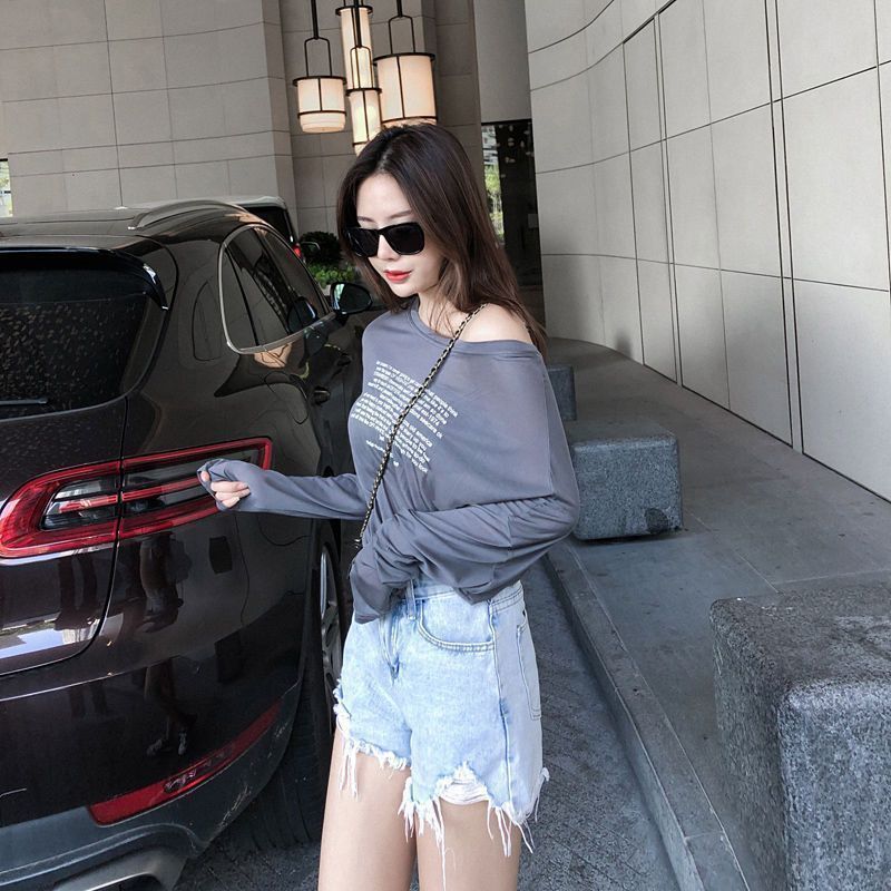 Retro Alphabet Long Sleeve Loose Slimming Thin Pullover Sun Protection Shirt