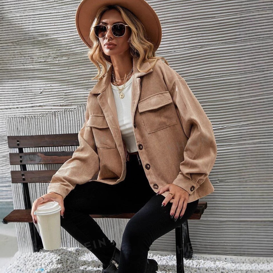 Retro Cardigan European And American Pocket Coat Women
