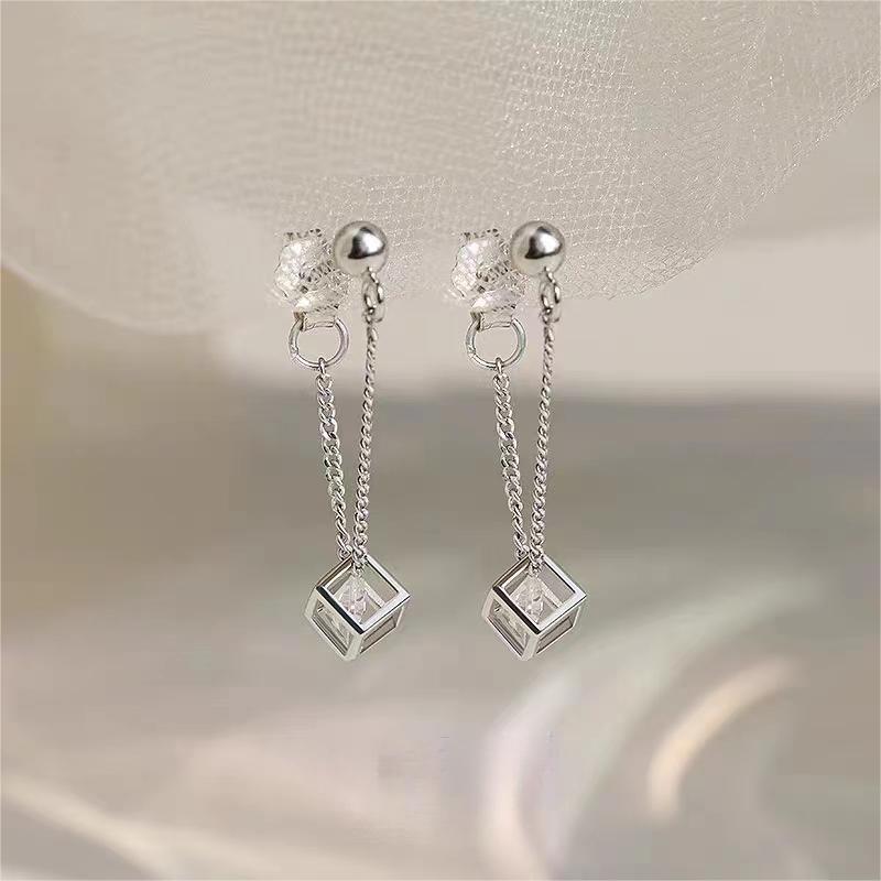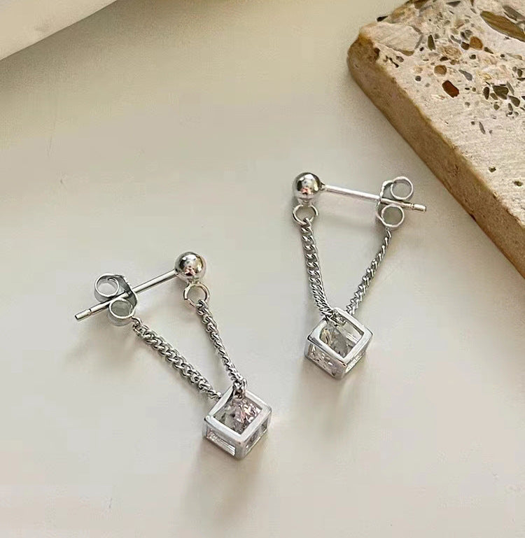 S925 Sterling Silver Rubik's Cube Earrings Female Niche Design High-grade Light Luxury Earrings
