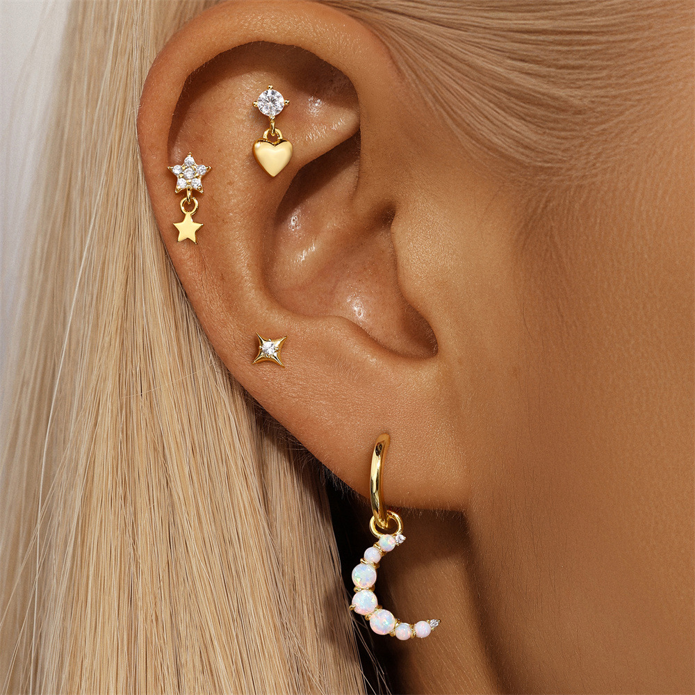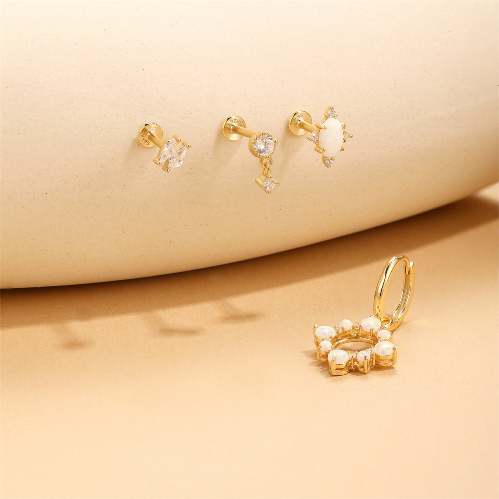 S925 Sterling Silver Shiny Diamond-encrusted Opal Zircon Earrings
