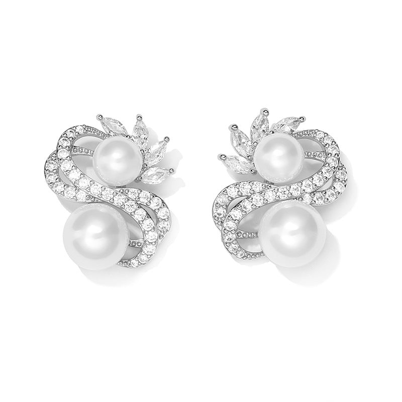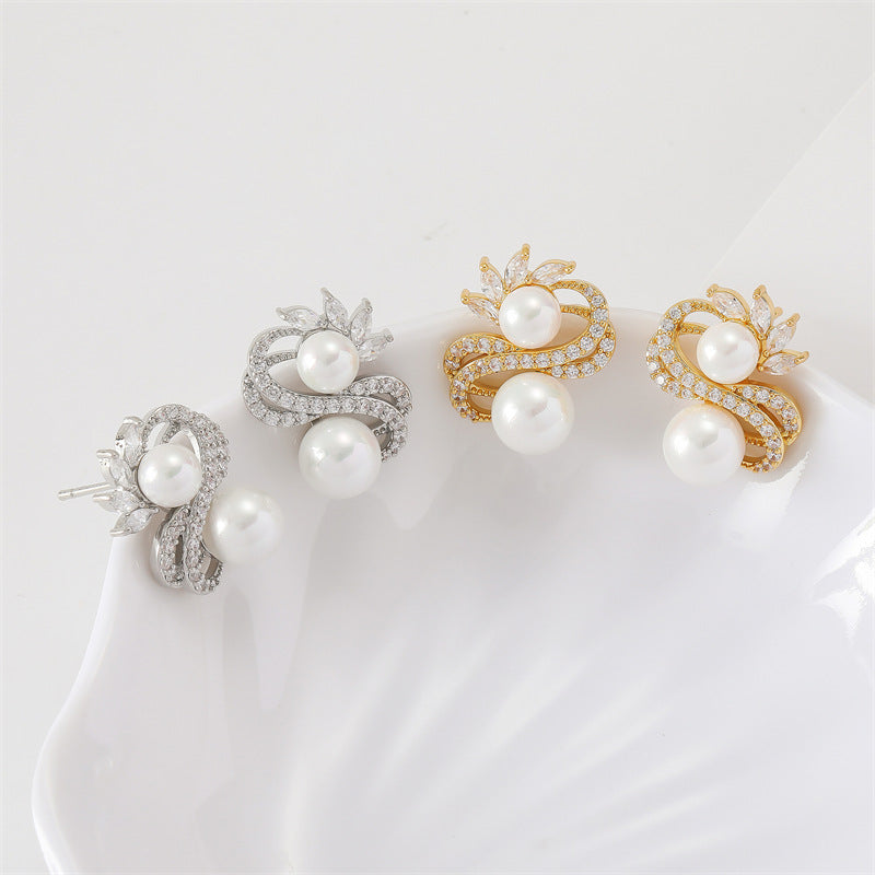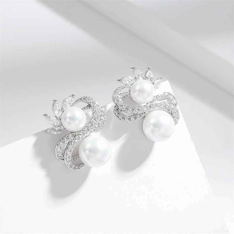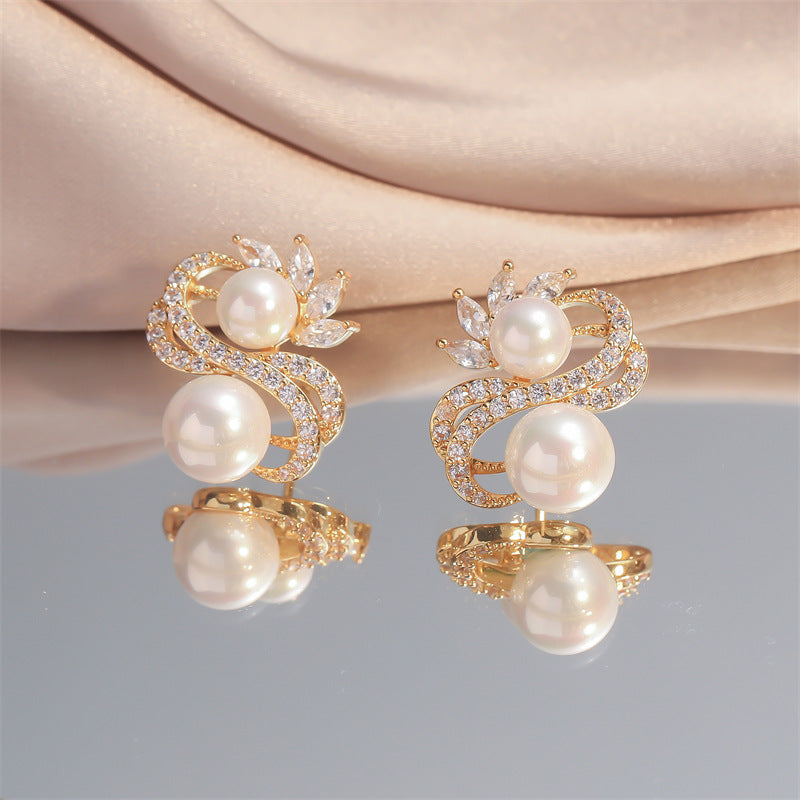 Silver Needle Pearl Earrings S-shaped Drop Zircon Temperament
