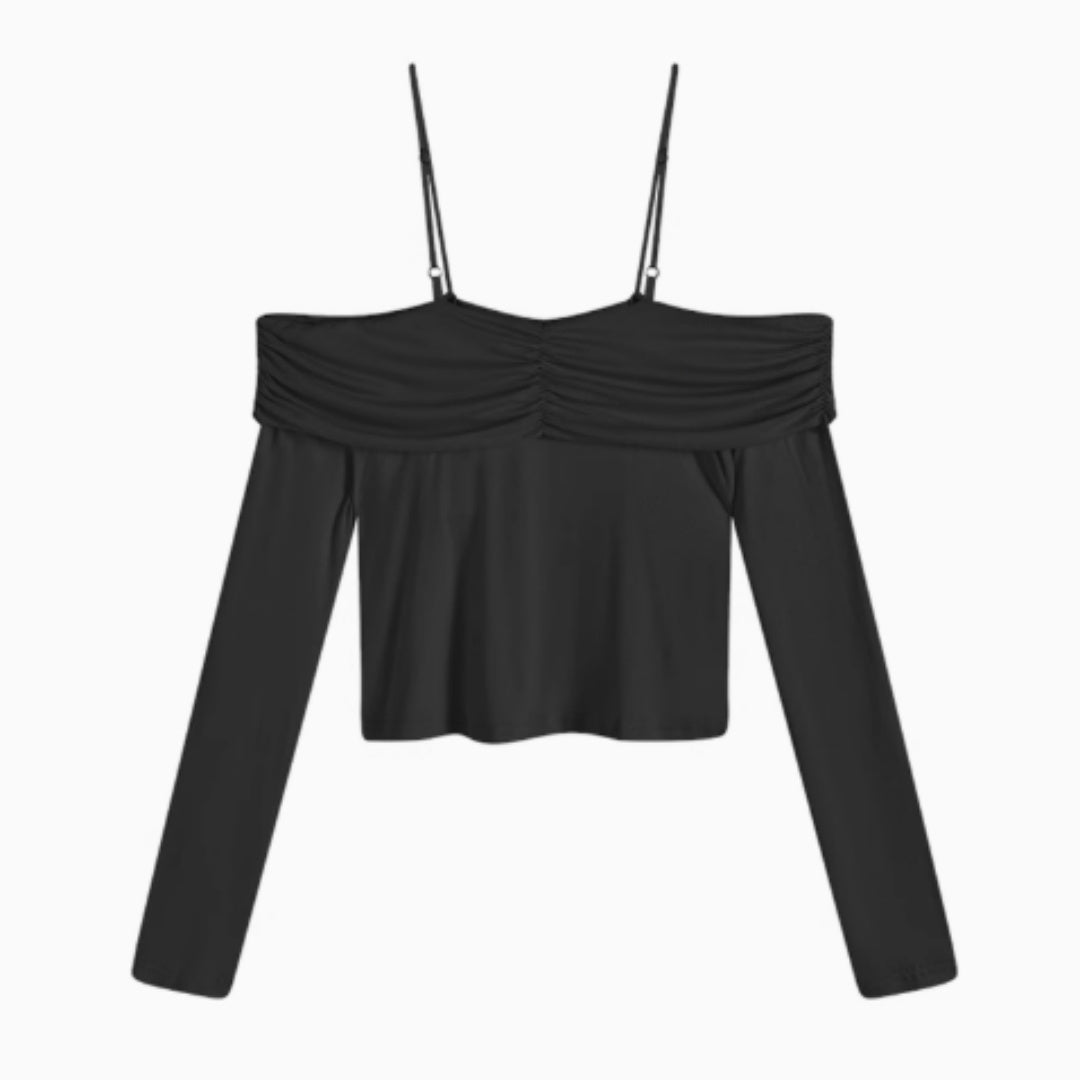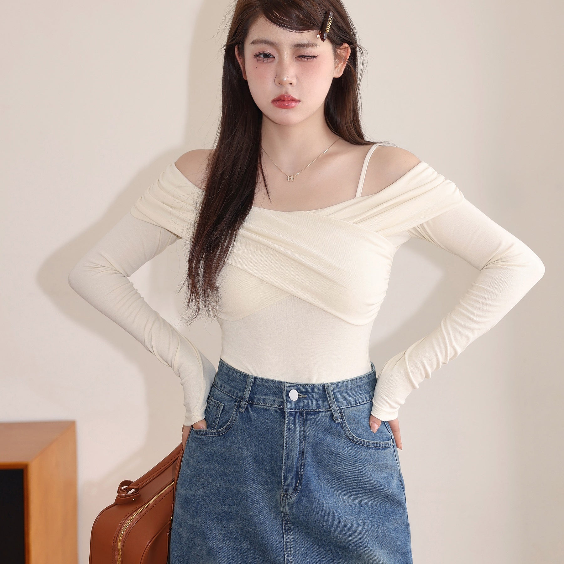 Slimming And Slimming One Shoulder Top, Sticky And Long Sleeved T