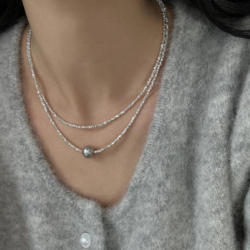 Color: small silver necklace (no pearl), family gray pearl necklace, family white pearl necklace