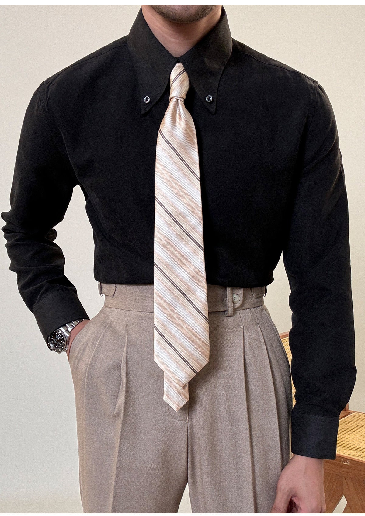 Men’s Spring Italian Large Pointed-Collar Slim Fit Shirt – Elegant Casual