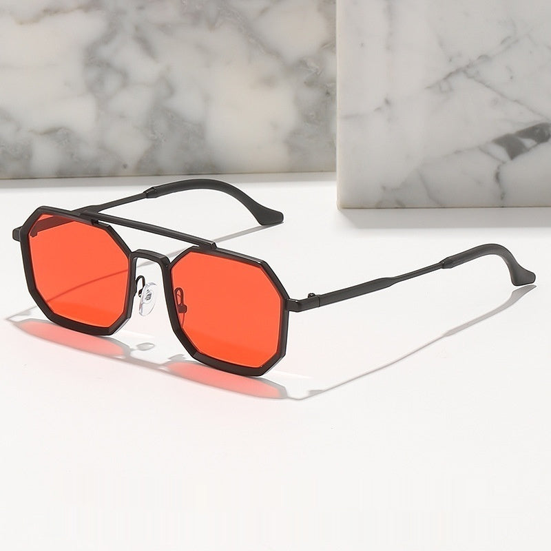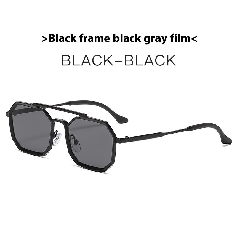 Steampunk Double Beam Sunglasses European And American unisex Metal Polygon Large Frame