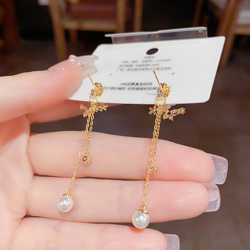 Sterling Silver Needle Mori Style Light Luxury Fritillary Flower Dual-wear Tassel Earrings
