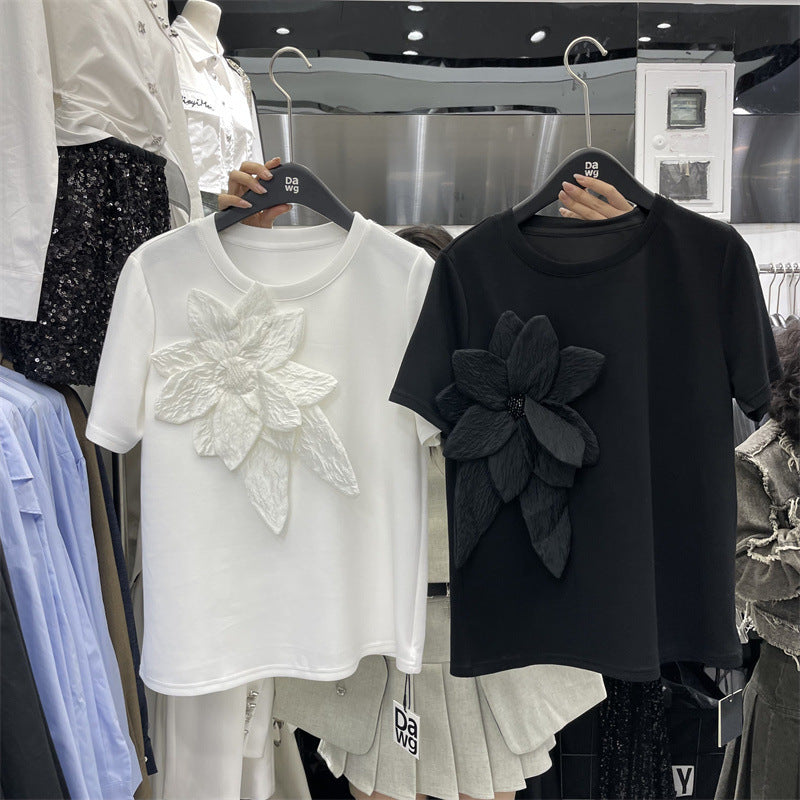 Three-dimensional Flower Air Layer Short-sleeved T-shirt For Women