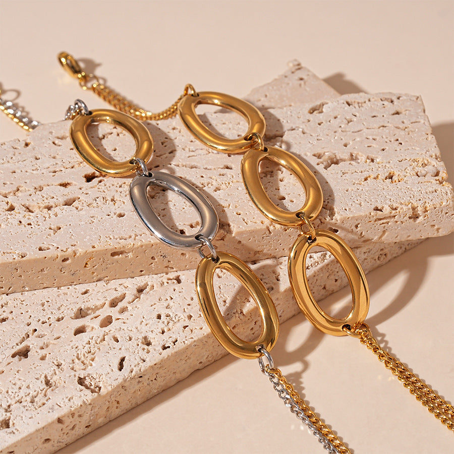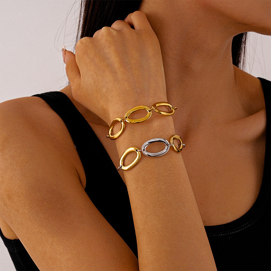 Titanium Steel Metal Geometric Oval Bracelet For Women