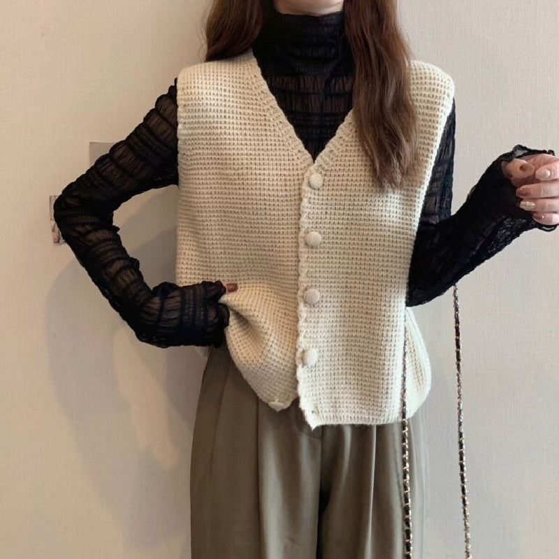 V Neck Knitted Cardigan Sweater Vest