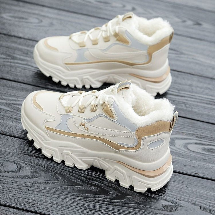 Warm Thick Sole With Velvet Lace Up Casual Sports Student Running Shoes