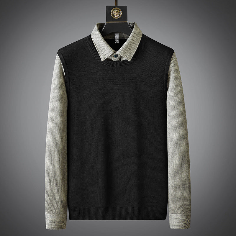 Winter Brushed Woolen Thickened Fake Two Pieces Sweaters Men