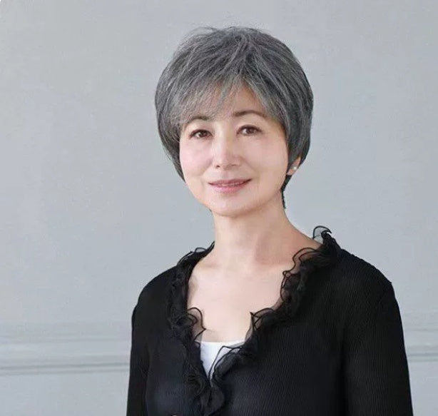 Women's Flower White Short Straight Top Old Flower White Mixed Human Hair Wigs