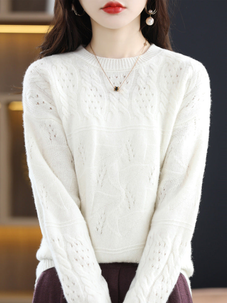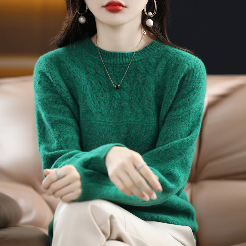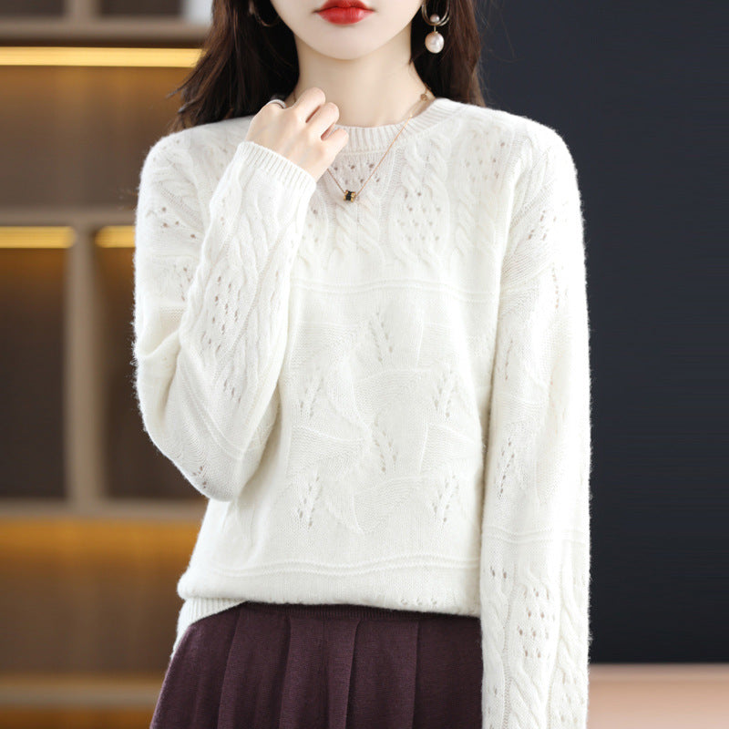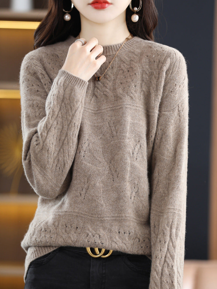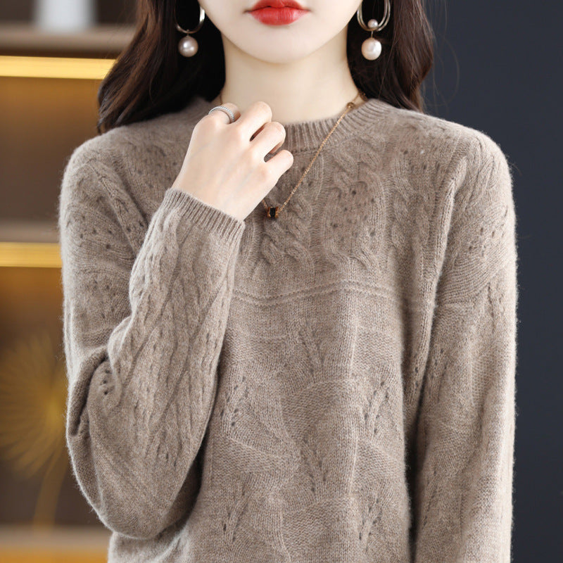 Women's Heavy Industry Jacquard Round Neck Pure Wool Sweater