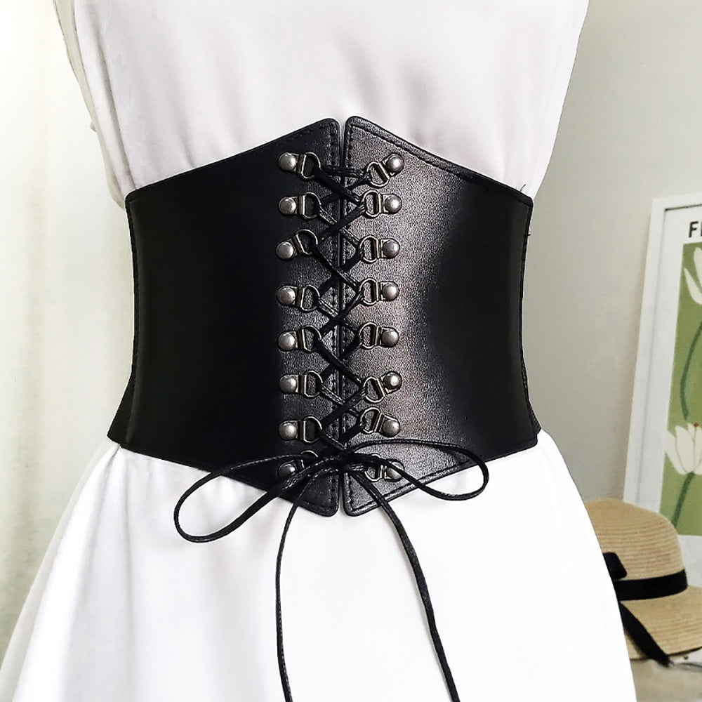 Women's Punk Rivet Lace-up Waist-controlled Slimming Elastic Waistband